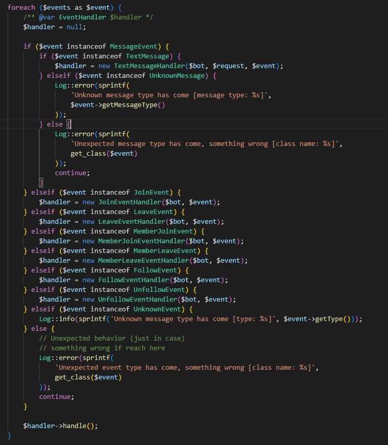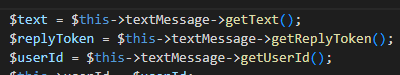 4.TextMessageHandler.php (這是針對文字輸入事件的Handler,主要更改這個,其他事件都大同小異)